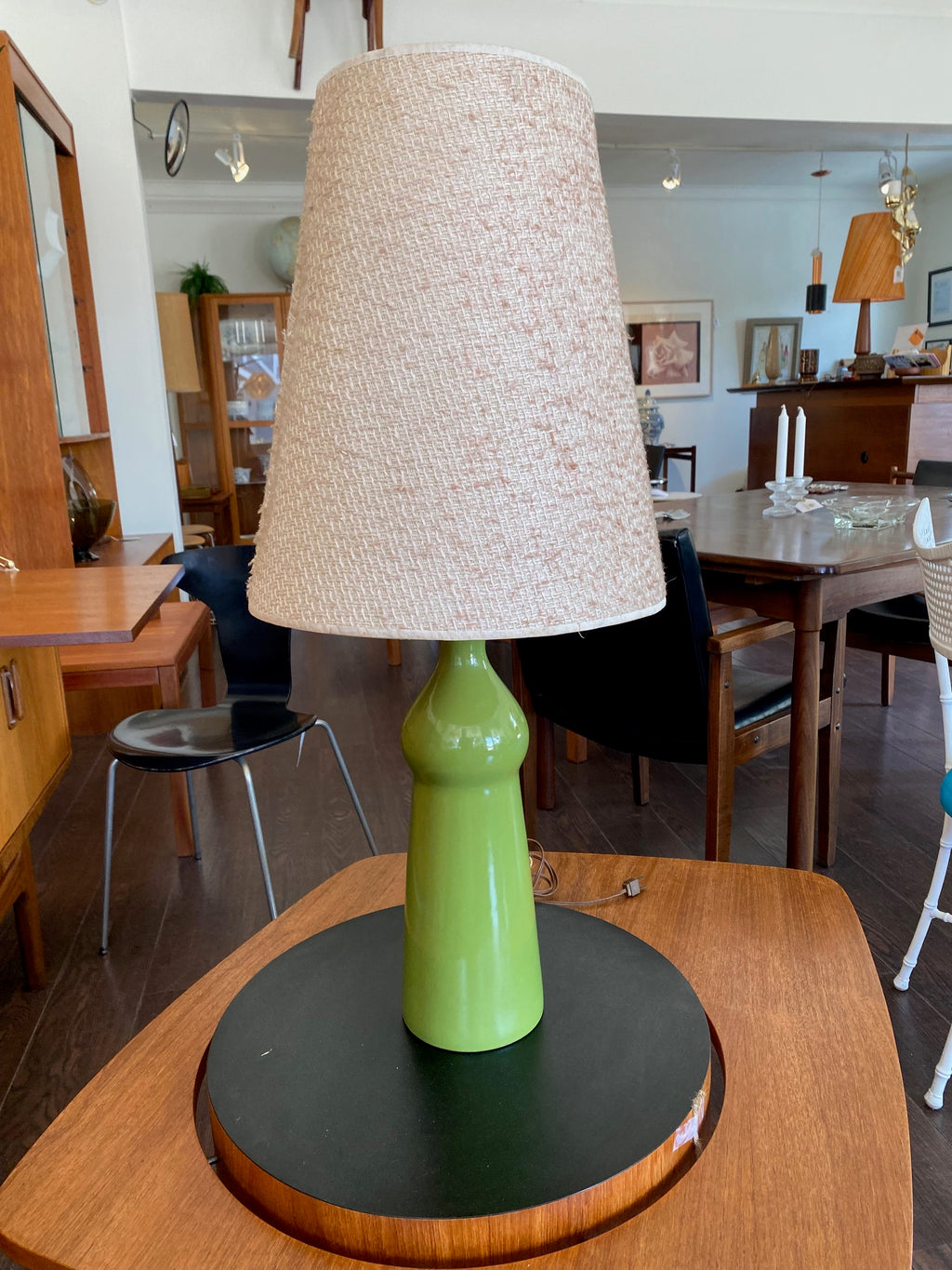 Large Grass Green Ceramic Vintage Lamp