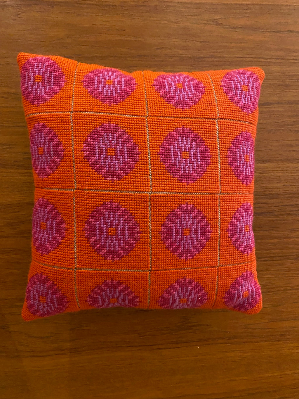 Vintage Orange, Yellow & Green Needlepoint Pillow