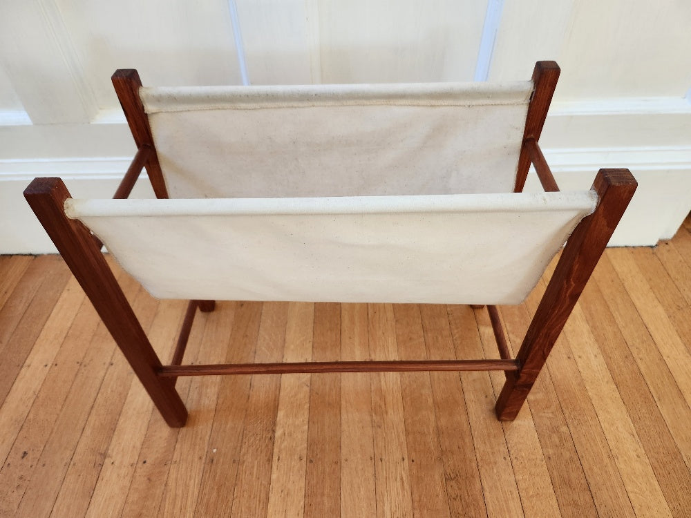 MCM Scandinavian Teak Magazine Holder with Canvas Sling