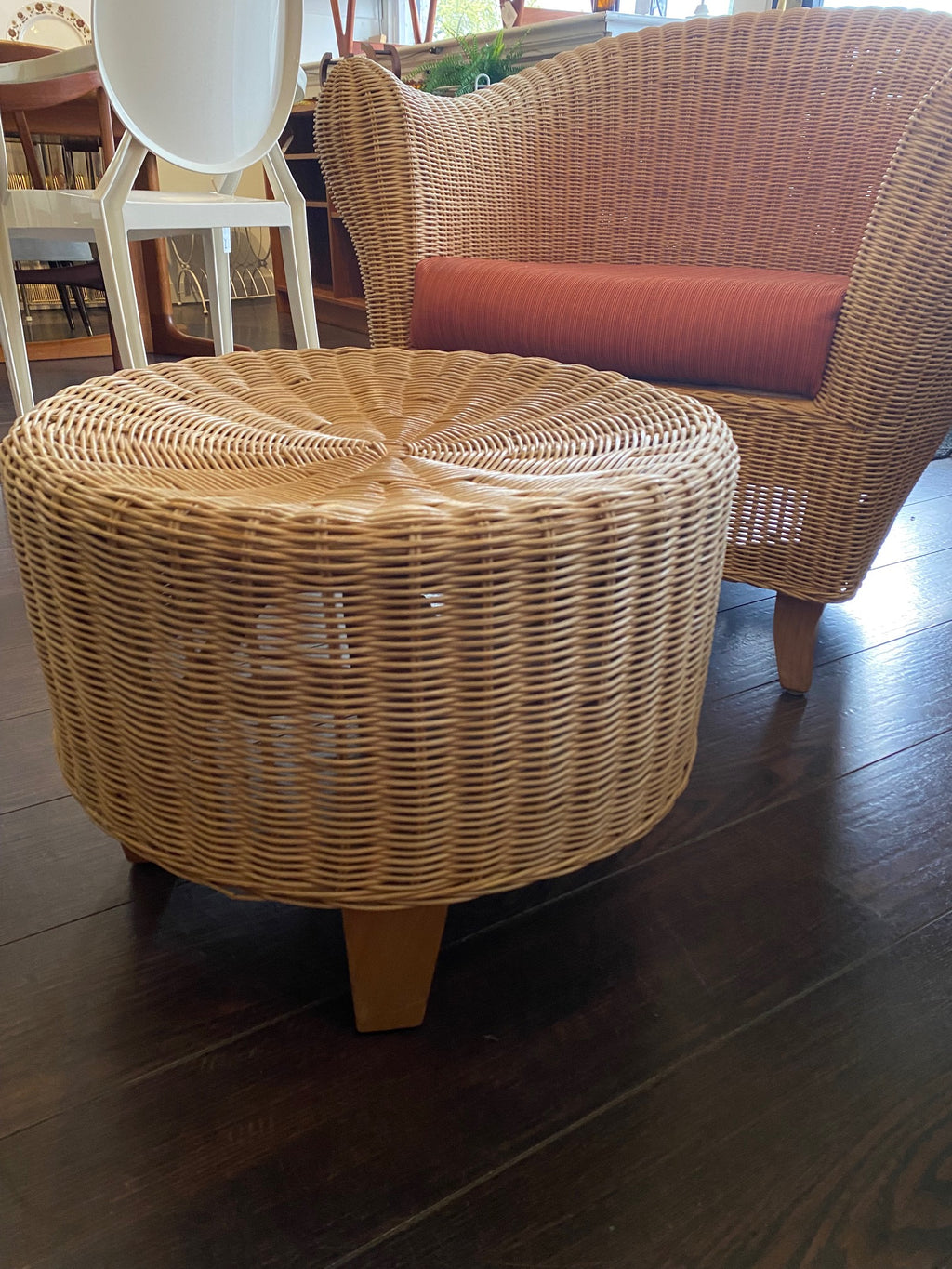 Vintage Wicker Ottoman/ Side Table