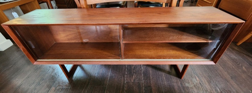 Set of 4 Teak with Brown Fabric Dining Chairs