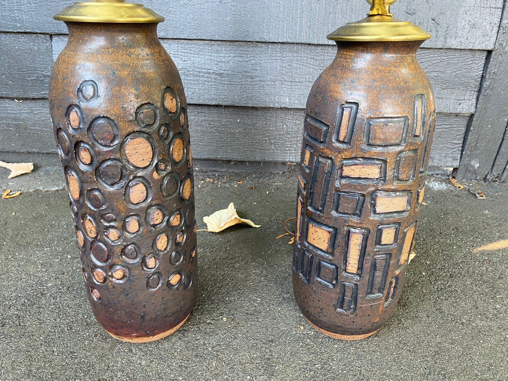 MCM Ceramic Lamp With Geometric Circular Embossed Texture