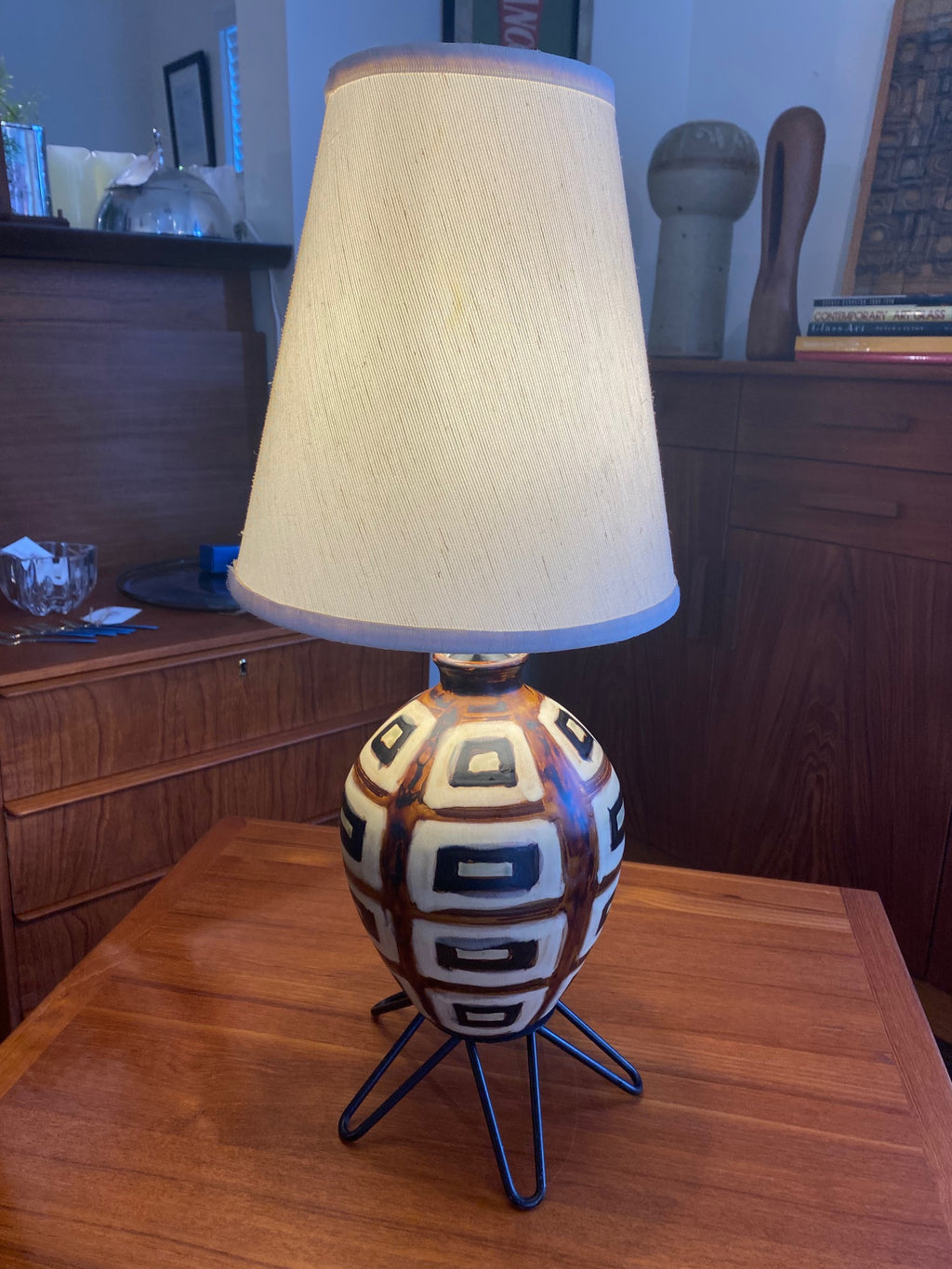 Vintage Table Lamp with Bold Geometric Design and Hairpin Metal Legs